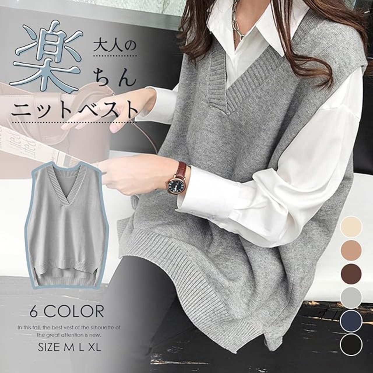 【ニットベストでコーデを今っぽく】この春、大注目の大人シルエットゆる感の無地ベストが新入荷!トレンド感のあるの着こなしを叶えてくれる!『ルーズシルエットVネックニットベスト』シンプルなデザインながら、鮮度の高いスタイルを演出。重ね着で楽しむことはもちろん、それ一枚でもこなれた印象を叶えてくれる「ニットベスト」。レイヤード次第でロングシーズン楽しめる。上品な雰囲気に仕上がる落ち着いたカラー展開:清潔感あるベージュとキャメル、定番ブラック・ネイビー・グレー、おしゃれなブラウンとの6色揃えています。