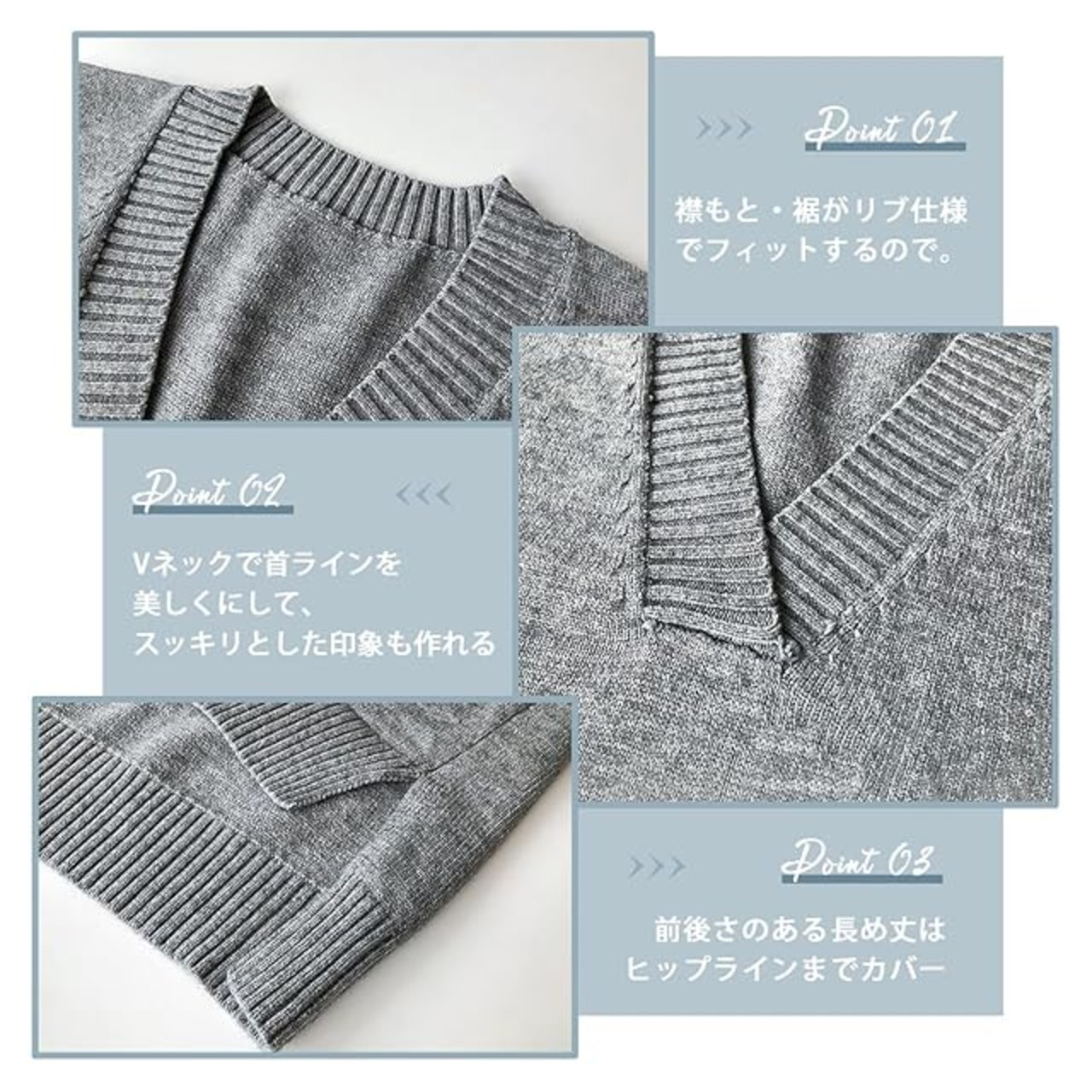 【上質生地、洗練された大人雰囲気】肌触りが良いのも嬉しい!暖かく柔らかい肌触りでリラクシーな着心地のもちっとニット生地を採用した、今季もトレンドの「飽きない着回しが叶う」セーターです。襟もと・裾がリブ仕様でフィットするので、だらしなくなりすぎずニットベスト特有の抜け感に導きます。適度なハリとコシでコーデを格上げします。ニットベストで着こなしをアップデート!通勤、通学などデーリーにご着用いただけるのはもちろん、お出かけやデート、旅行などでもお使いいただけます。