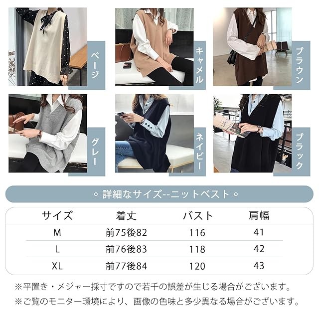 [Guooryvner] グオーリーブナー ニットベスト レディース セーターベスト 春 秋 冬 ニット 大きいサイズ vネック ゆったり セーター オフィス ベスト 春服 ロング オーバーサイズ 薄手 ノースリーブ おしゃれ トップス カジュアル 通勤 | AVENIR