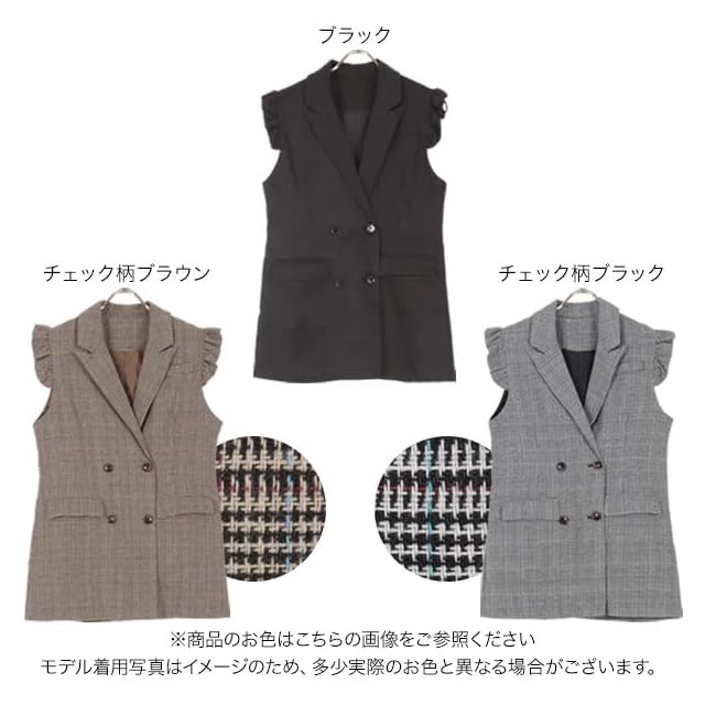 ベーシックな無地ブラックと、チェック柄2色から選べる全3色展開。裏地付きなのできちんと感もありつつ、ショルダーフリルがほどよいアクセントに◎。プライベートでの着用はもちろん、オフィスシーンにも活躍すること間違いなしです。