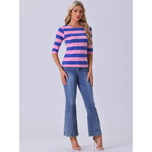 ボーダー柄、五分袖、ボートネックで鎖骨魅せ!柔くて、通気性や着心地良い!