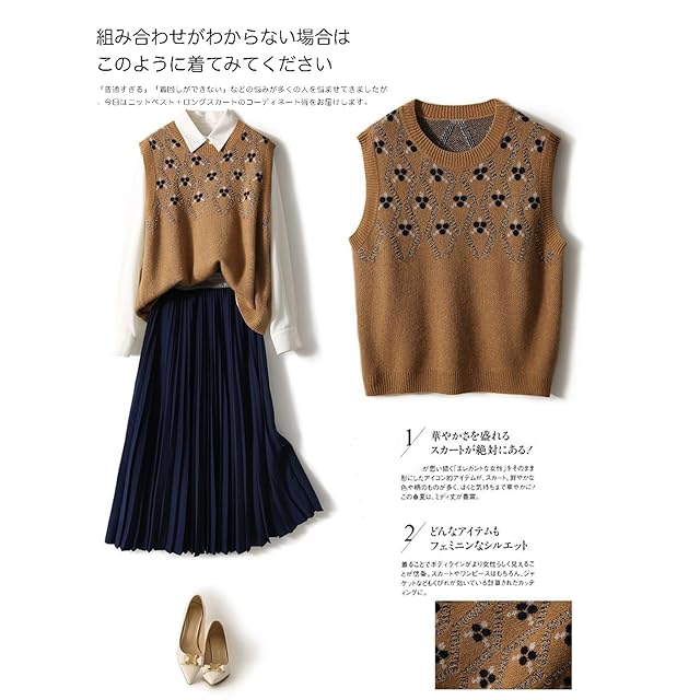 女性向けアパレルにぴったりなこのスリーブレスニットベストは、カジュアルなおしゃれを演出するだけでなく、クラシックなスタイルにもマッチするオールマッチなデザインです。カラーバリエーションも豊富で、サイズ展開も充実していますので、自分用はもちろん、ギフトとしてもおすすめです。