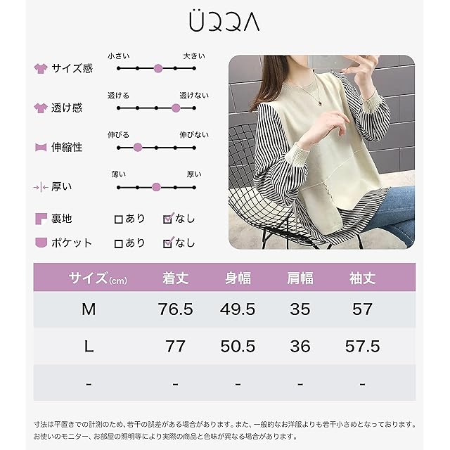 サイズ参考:M 着丈76.5cm、身幅49.5cm、肩幅35cm、袖丈57cm L 着丈77cm、身幅50.5cm、肩幅36cm、袖丈57.5cm 寸法は平置きでの計測のため、若干の誤差がある場合があります。また、一般的なお洋服よりも若干小さめとなっております。お使いのモニター、お部屋の照明等により実際の商品と色味が異なる場合があります。