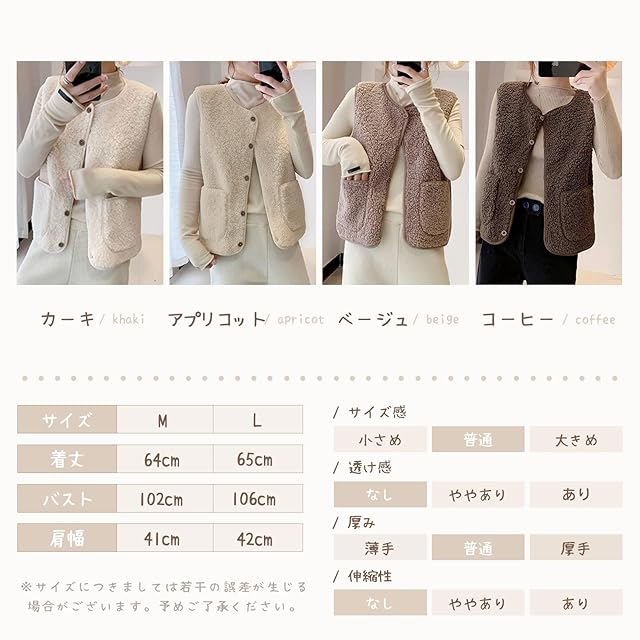 [xppe] ベスト レディース ボアベスト もこもこ ボタン付き 袖なし 丸首 前開き クルーネック 暖かい ポケット付き ノースリーブ 無地 大きいサイズ 体型カバー ふわふわ カジュアル 重ね着風 フリースジャケット アウター 春秋冬