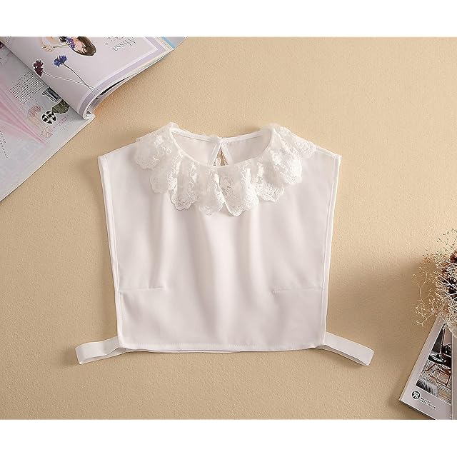[UMIYI] 付け襟 レディース 花レース 襟 姫系 丸襟 透け感 重ね着 レイヤード フェイク衿 ズレにくい 大人可愛い エレガント シフォン オールシーズン おしゃれ 折り襟レース,ホワイト | AVENIR