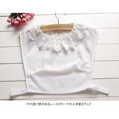 フリーサイズ 襟ぐり:46cm 肩幅:36cm 着丈:30cm <BR> 流行りのつけ襟で簡単コーディネート!<BR> いつもの服を簡単スタイルチェンジ。<BR> スタイルのバリエーションが広がる!<BR> レースと花柄飾りの組み合わせで可愛い気分。<BR> フリルネックデザインのスタンドカラーでエレガントな感じを与える。<BR> 両側にゴムが付いて、サイズ調節することができる、ズレを気にすることなく機能性も抜群です!<BR> お色はホワイト,ブラックの2色をご用意致しております。<BR> どの色を選んでも着回し力は抜群。<BR> むしろ色違いで持っていてもヘビロテ間違いなし!<BR> 主にラウンドネックのスウェットやニットなど、少し首が詰まっている<BR> トップスの襟から覗かせると可愛く相性が良いです♪ 是非デートやお出掛けに♪