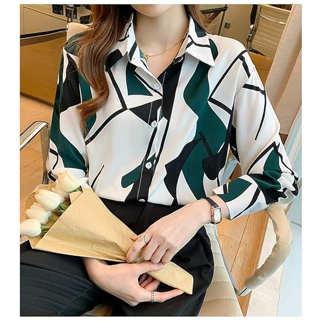 [NA] 長袖 ブラウス シャツ トップス エレガント おしゃれ 着痩せ 通勤 フォーマル 春 秋 レディース春物春 オフィス トップス 春物 レディースブラウス シャツ シフォン 長袖 カジュアル (M, グリーン) | AVENIR