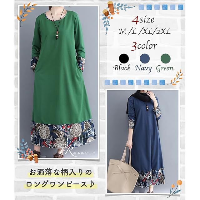[エムエルーセ] 重ね着風 小花 柄 長袖 チュニック ワンピース オシャレ 可愛い 春 春物 秋 秋物 冬 カワイイ かわいい 可愛い ユッタリ 長そで ロング たけ 大きめ 大きい オオキイ ゆったり おしゃれ オシャレ お洒落 ビジネス 通勤 オフィス カジュアル 森ガール 10 20 30 40 50 60 代 レディス フラワー ネイビー ロング丈 花柄 ワンピ MR98-NVXL | AVENIR