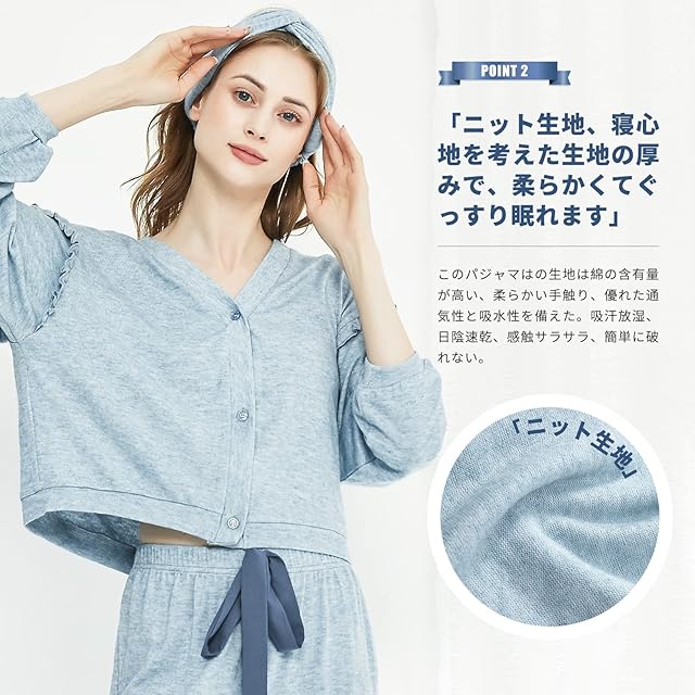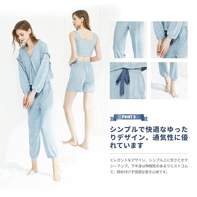 [Rose Halcyon] パジャマ レディース ルームウェア 寝巻き ルームワンピース 部屋着 ニット生地 7点セット 可愛い 長袖 パンツ ズボン キャミソール 冬 秋 春 夏 … … … (ニットブルー 七点セット, L) | AVENIR