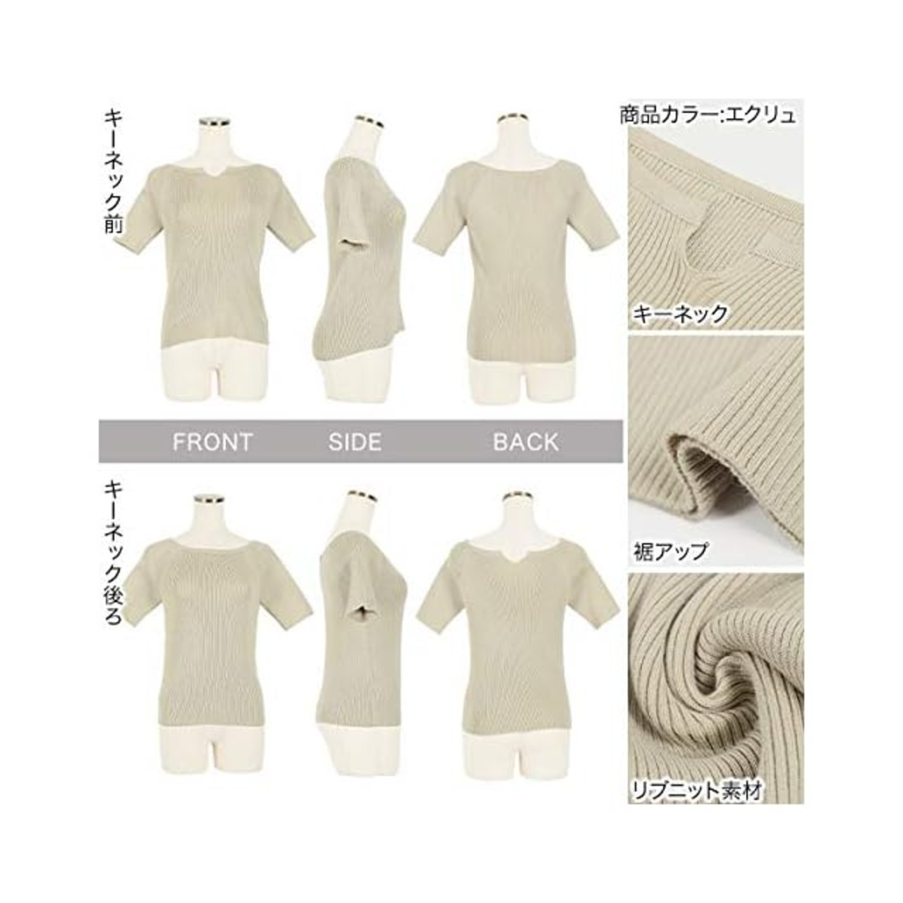 肌触りが良く伸縮性抜群のリブニット素材。程よく体にフィットし、女性らしさを引き立たせてくれます。半袖で二の腕回りを気にせず着れるのも嬉しいポイント◎。