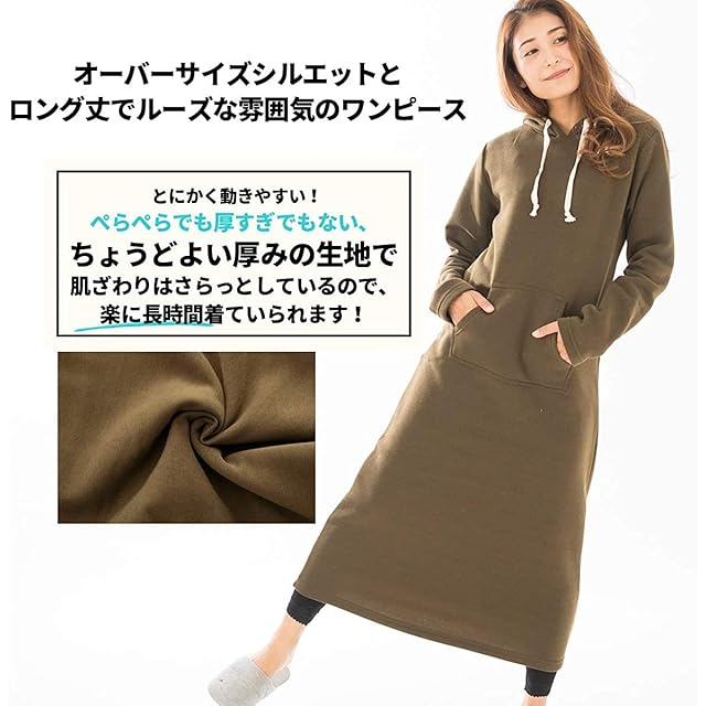 丁度良い生地の厚みで肌触りはさらっとしているので、楽に長時間着ていられます。お家でゆったり過ごす時間も大切。リラックスタイムにぴったりのワンピース。程よいだぼっと感が可愛い一着。