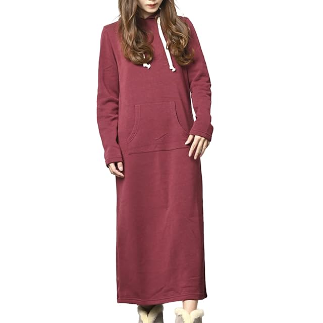 [アウニイ] 8224 裏起毛 ルームウェア 長袖 ワンピース パジャマ 秋 冬 部屋着 カジュアル レディース 大きい チュニック サイズ マタニティ フーディー パーカ 女の子 カワイイ ロング 丈 ワンピ 服 キレイメ 8224 (ボルドー M) | AVENIR