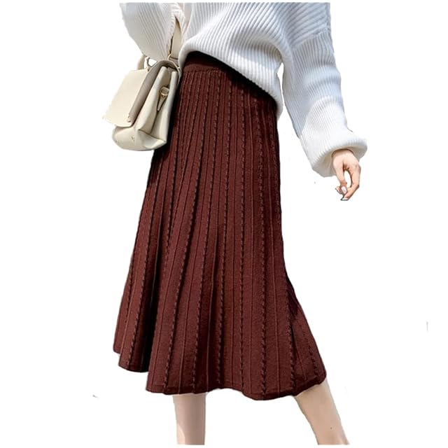 [Yejocely] プリーツスカート リブニットスカート タイトスカート レディース ミモレ丈 オフィス 上品 フレア 体型カバー 秋冬 通勤 セーター シンプル ブラウン Free | AVENIR