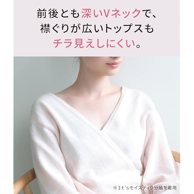 ❸スタンダードな9分袖。前後とも深いVネックで、トップスの襟あきからのぞきにくい。