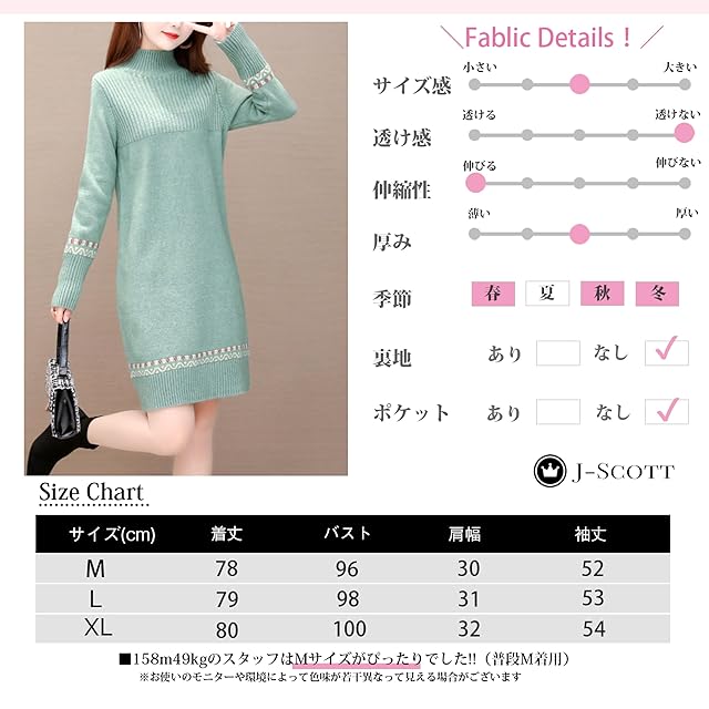 【カラー】 コーディネートを引き締めてくれるブラック、柔らかいペールトーンが肌なじみの良いベージュ、女性らしさも演出できるこっくりとしたブラウン、今季のトレンドカラーでもあるニュアンシーなグリーンの4色をご用意しております。 【サイズ】 サイズはM〜XLの3サイズ展開 着丈/バスト/肩幅/袖丈 M:78/96/30/52 L:79/98/31/53 XL:80/100/32/54 *158cm/49kgのスタッフの場合:Mがジャストサイズでした(普段M着用)