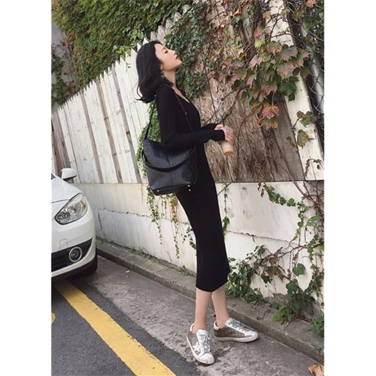 【美シルエット】タイトなシルエットながらも伸びのよいリブ編みにすることで、楽ちんな着心地と細見え効果を実現。身体のラインにキレイにフィットしてくれます。また、ウエスト部分の切り替えデザインが、より「くびれ」を強調してくれます。膝下のミディ丈が上品で女性らしい落ち着いた印象をプラス。