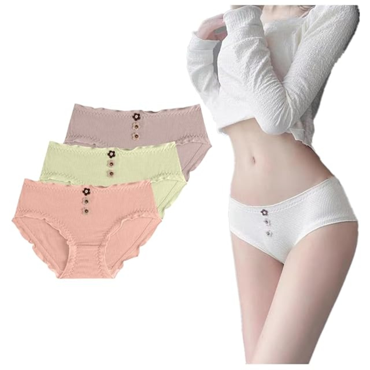 [HINICE] ショーツ レディース リボン 花モチーフ 可愛い 綿ショーツ ガールズ 中学生 10代20代30代 通気 伸縮性 フィット感 ヒップアップ 美尻 美腹 少女 綿パンツ 3枚組 (LL, 3色セット1) | AVENIR