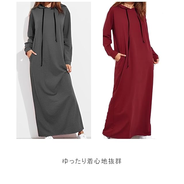綺麗めシルエットに柔らかく肌触りの良い素材のパーカーワンピースが登場です。長時間の着用も柔らかめ素材で着心地Good◎ フード付きのマキシ丈ワンピースで、ボディーラインを拾わず首元はゆったりめです。シンプルなデザインながらも単色で使い勝手も良く一枚でオシャレに決まるマストアイテムです。 小物や鍵などが収納可能な嬉しいポケット付きで、手ぶらコーデも叶います◎ 機能性も兼ね揃えた大人可愛いワンピは、秋冬春とロングシーズンでお使いいただけます◎
