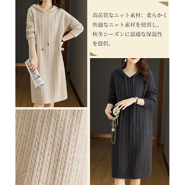 【秋冬のマストアイテム】肌ざわりが柔らかく快適。伸縮性に優れた暖か素材のニットワンピースは体に優しくフィットするので、一日中快適にお過ごしいただけます。かわいいデザインと機能性を両立したワンピースは冬に欠かせないアイテムです。