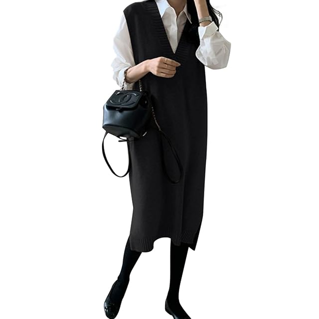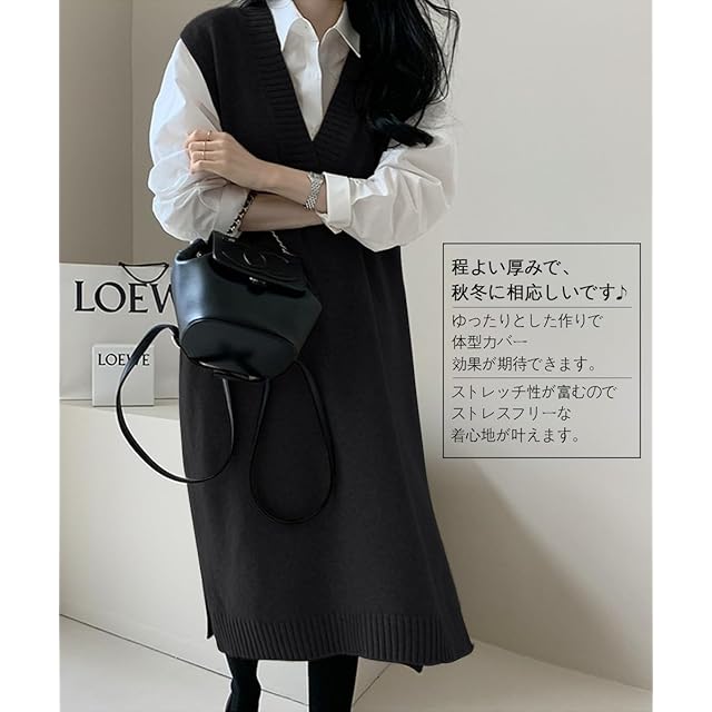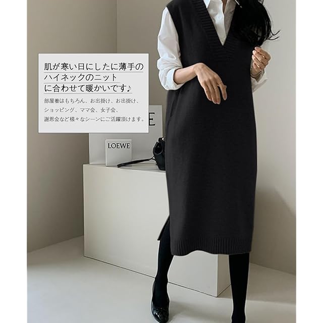 [Bidason] ニット ワンピース レディース Vネック ノースリーブ ロング エレガント 体型カバー おしやれ スリット 大人 可愛い 重ね着 柔らか 暖かい ベスト カジュアル 通勤 春 秋 冬 | AVENIR