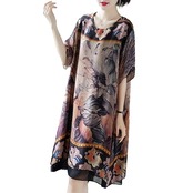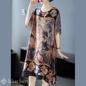 【オリエンタルなムードが印象的なAラインワンピース】 フワリと緩やかなシルキー素材に、トーンをおさえたボタニカルプリントがしっとりと落ち着いたムードのワンピース。オリエンタルな色香が漂うスタイルは、美しいアートのようにキャッチーで、存在感を引き立てます。まとうだけで印象的なコーディネートが完成する主役級のワンピースです。