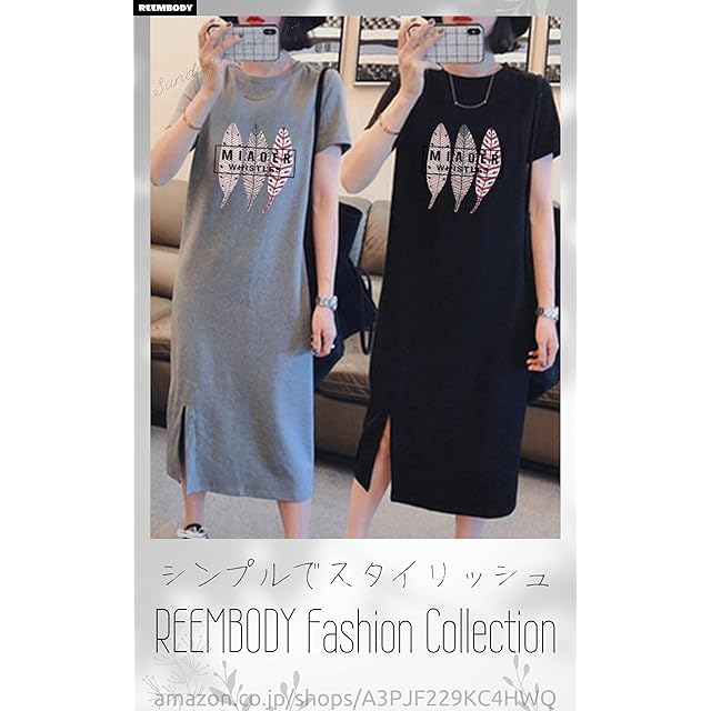 [エンプティオ] 可愛い ミモレ丈 ワンピース スリット入り お洒落 カットソー ワンピ レディース 楽ちん キレイ 半袖ワンピース ボヘミアン プリント リゾート風 膝丈 半袖 アジアン ロングワンピース カジュアル膝丈 エスニック キレイめ サマードレス 清楚 袖あり 膝下 フェミニン 部屋着 綺麗め 大人 aライン ビーチ 丸首 uネック ミドル丈 涼しい ミディワンピ (XL) グレー | AVENIR