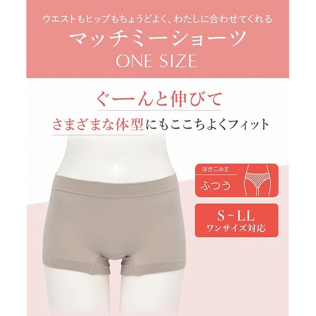 「マッチミーショーツ ONESIZE」S〜LLまでカバーする高伸度で 包みこむように、わたしに合わせてくれる