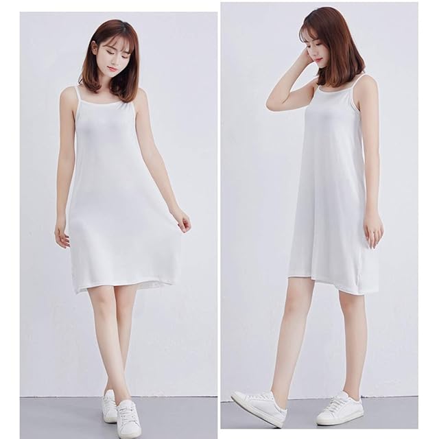 [Maraeliza] レディース ペチコート ロング ルームウェア スリップ キャミソール インナー 透け防止 インナーワンピース 膝丈 柔らかい シンプル White Short L | AVENIR