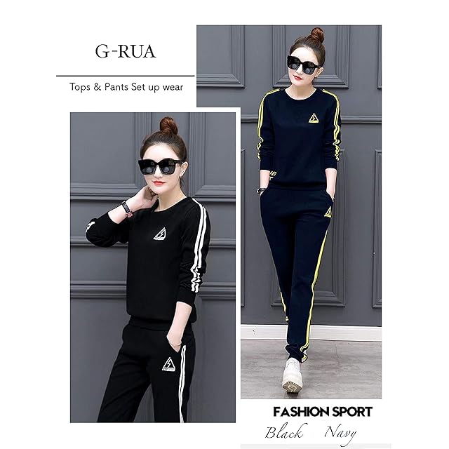 [ジルア] 日本規格L レディース スウェット ジャージ 上下 セット セットアップ 長袖 トップス パンツ セット 春 夏 秋 冬 春秋 秋冬 パジャマ ルームウェア 女 女性 レデース ダンス カジュアル デザイン (ブラック 黒, XL)#094 | AVENIR