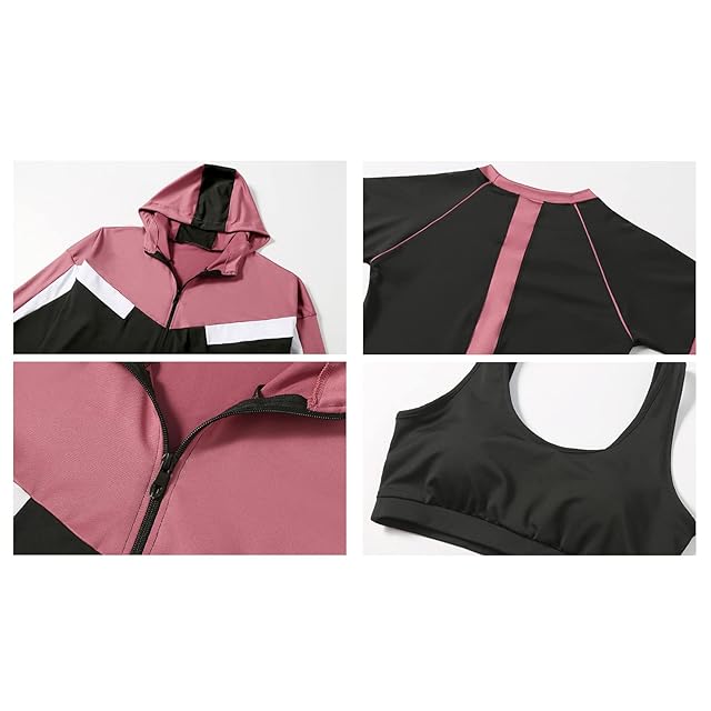 【4点セット】スポーツブラジャー&Tシャツ&スポーツパーカー&ズボン 全て揃った上下4点セットのスポーツウエア!自分の好みに合わせて様々な組み合わせることができる。春から冬までロングシーズンお使いいただける。