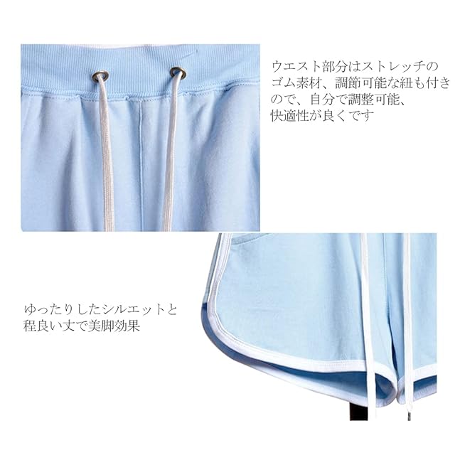 ショートパンツのウエスト部分はストレッチのゴム素材、調節可能な紐も付きので、自分で調整可能、快適性が良くです。ポケット付き、おしゃれで実用的なアイテムです。