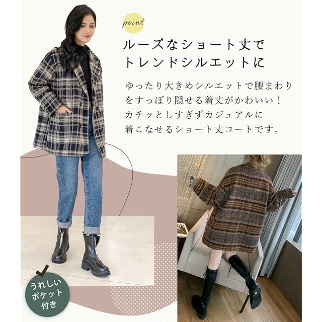 セット内容・1点・ショートコート ルーズなサイズ感で気になる腰回りをしっかりカバーアップ♪ショート丈女性用ダブルコート 裏地あり オシャレ かわいい キルティング生地