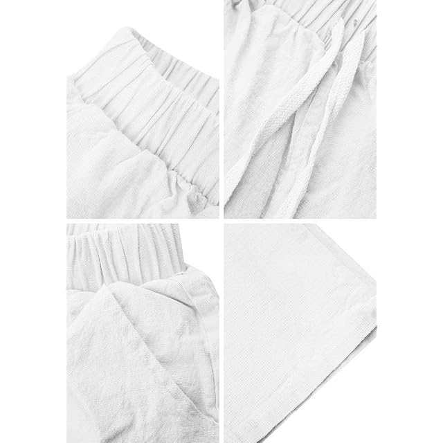 [OMZIN] チノパン レディース テーパード ロングパンツ レディース 麻素材 大きいサイズ S~2XL ホワイト XL