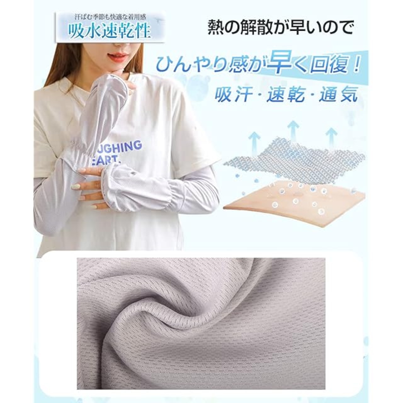 【ひんやり冷感素材】アームカバーは涼しい冷感布地を採用して、夏場に少しでも快適に過ごせるよう設計されひんやり冷感アームカバーです。水や汗で濡れると気化熱の作用により冷却効果があり、肌と接触した瞬間に温度が下がり、ヒンヤリとした冷感が続き、ひんやりとした使用心地が夏用にぴったりです。