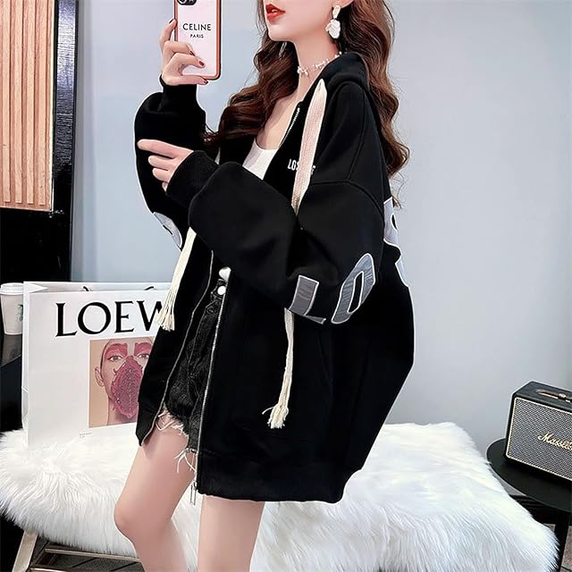 [MMTYRM] ジップアップパーカー レディース ジャケット ゆったり おしゃれ ジャケット秋 コート スポーツ風 オーバーサイズ ジャケット フード付き 薄 ジャケット レディース 服 トップスブラックM