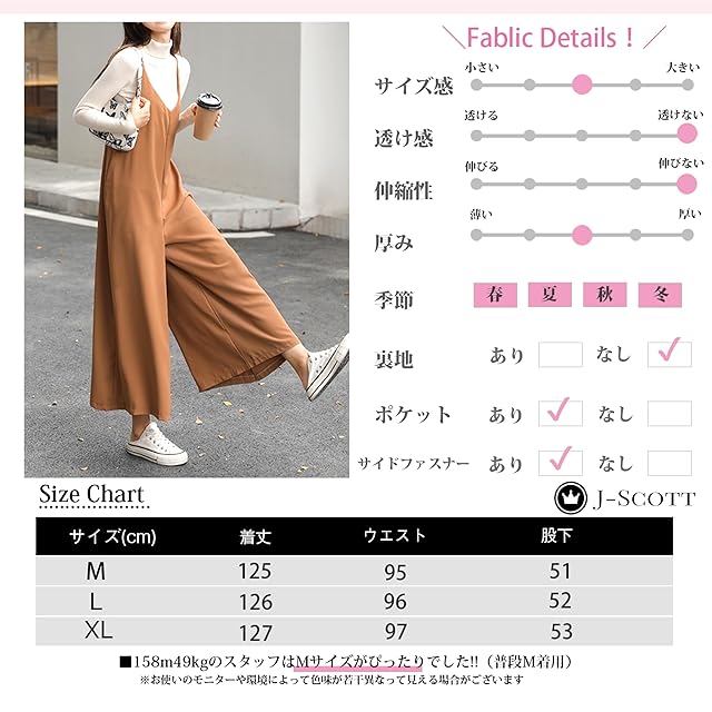 [ジェイスコット] きれいめ大人サロペット かわいい 楽ちんコーデ ワイドパンツ ポケットあり シンプル カジュアル キレカジ ガーリー 華奢魅せ 上品 柔らかい ポリエステル素材 イージーケア 簡単お手入れ 軽やか デザイン 華奢 やわらかい ニュアンスカラー 楽ちん 大人カジュアル 生地たっぷり スタイルアップ ゆとり ボタンなし ベージュ ミルクティ JS14-BG-L | AVENIR