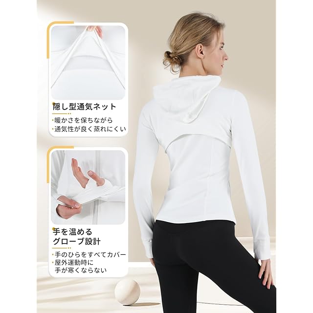 【多機能袖口】袖口の表に、収納可能なグローブを設計、手のひらまですべてカバーし、屋外運動時に手が寒くなりにくい。また、袖口の裏に、滑り止め用サムホールを設計、激しい運動時にサムホールを親指に通すことで、服のズレを防止することが可能。