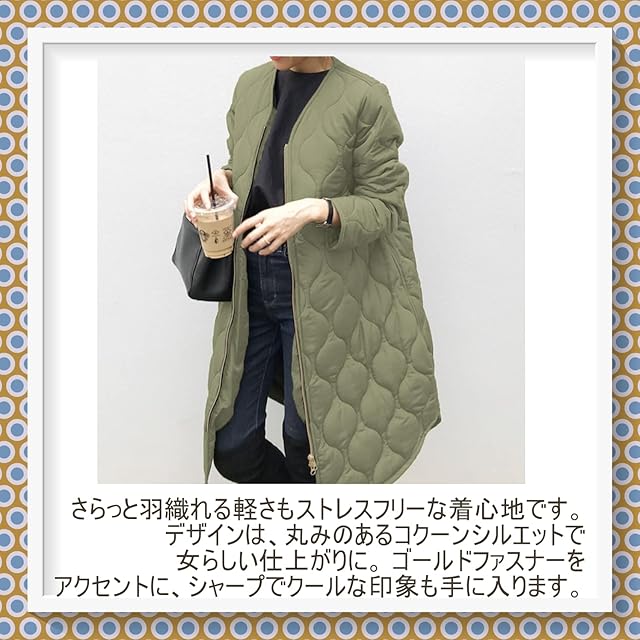 [1/2plus] [ニブンノイチプラス] ジャケット ブルゾン コート ジャンパー キルティング ミリタリー 中綿 軽い 軽量 モッズ ノーカラー ファスナー レディース (M, カーキ) | AVENIR