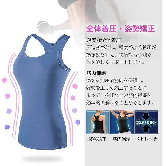 [Sillictor] スポーツインナー タンクトップ レディース ノースリーブ コンプレッション インナーシャツ キャミソール パワーストレッチ アンダーウェア [UVカット・冷感速乾] 2002grbl-M | AVENIR