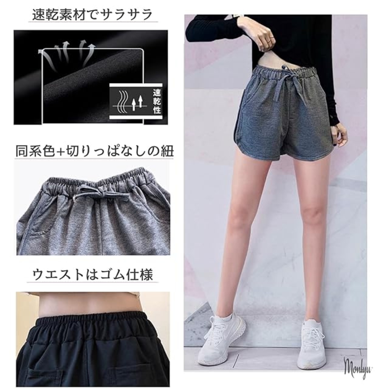 [Monlyu] レディース ショートパンツ 短パン 綿 混 夏 スポーツ 柔らかい 部屋着 ポケット 付 フィットネス ランニング ジム ハーフ パンツ ヨガ 黒 ウエスト ゴム 速乾 美脚 (M, ブラック) | AVENIR