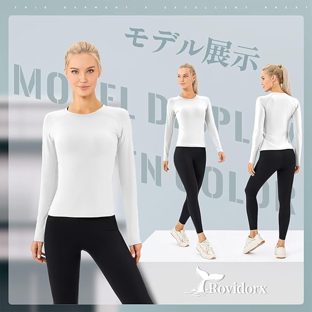 [Rovidorx] スポーツインナー レディース 長袖 裏起毛 アンダーウェア コンプレッションウェア 防寒 インナー インナーシャツ アンダーシャツ 暖かインナー 加圧シャツ 保温 速乾 2534-wh-M | AVENIR