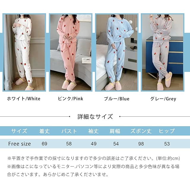 [Gfuracefuliayer] パジャマ レディース 長袖 秋 冬 かわいい いちご柄 コーラルフリース ホーム服 カジュアル ルームウェア オーバーサイズ クルーネック 2点セット サンゴベルベット大きいサイズ ゆったり おしゃれ 体型カバー | AVENIR