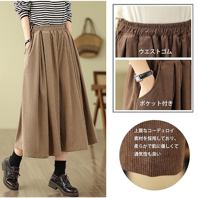 [CoeFodMavo] ワイドパンツ レディース ロングパンツ ガウチョパンツ サルエルパンツ コーデュロイ 大きいサイズ おしゃれ ウエストゴム カジュアル 無地 体型カバー ゆったり 着痩せ 美脚 春 秋 冬 | AVENIR
