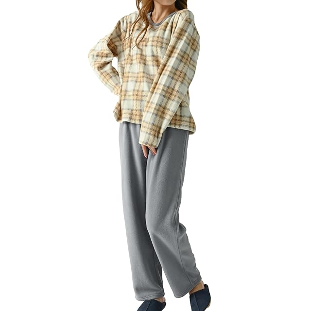 [MORE AUNI] フリース パジャマ レディース 上下セット セットアップ 柄 2サイズ 8306 (CHE-BE L-LL)