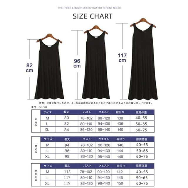 [SARADEMUNT] サラデマント〕ペチコート レディース インナー タンクワンピ ハーフスリップ ワンピース ルームウェア スリップ ミニ丈85cm/ひざ丈100cm/マキシ丈115cm M L XLサイズ 220628T-long-white-M | AVENIR