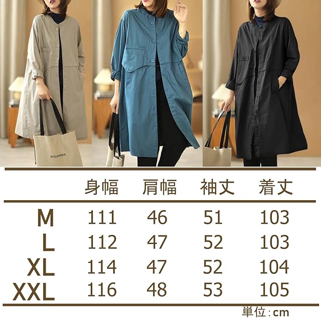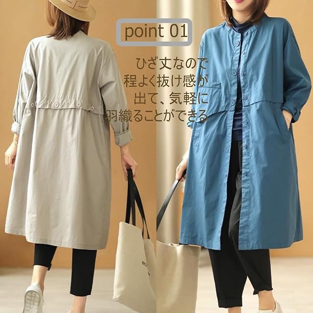 [1/2plus] [ニブンノイチプラス] コート スプリング ノー カラー 春 春物 ギャザー シンプル ファッション チェスター ワンピース シング 襟 なし レディース (L, ブルー) | AVENIR