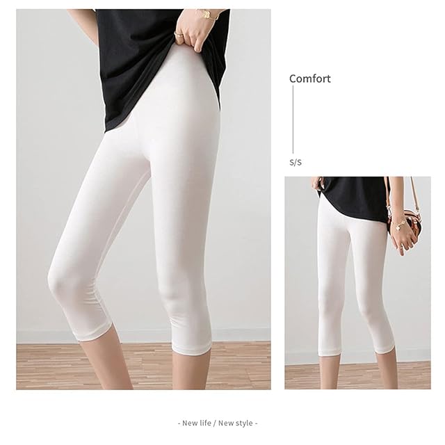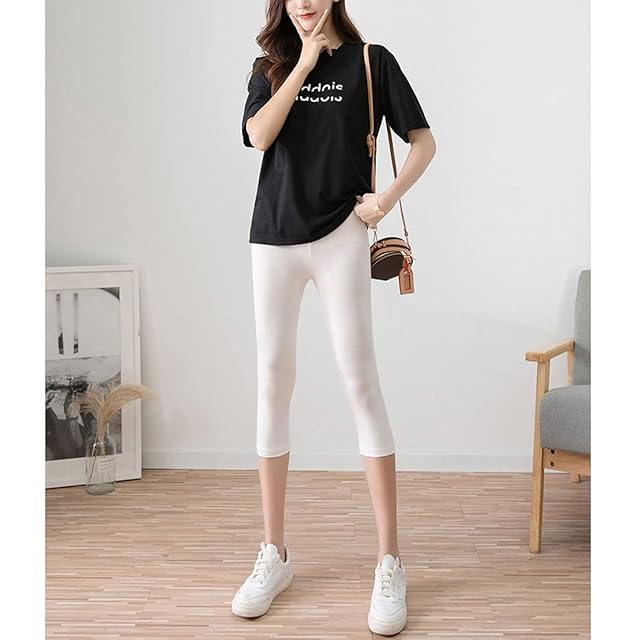 レディース スパッツ ショートパンツ 7分丈 ボトム パンツ LBS-031 (ホワイト, M)