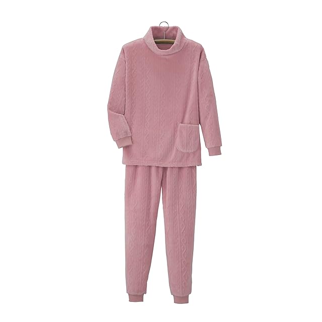 寒い日に心地よい温かさを提供する、ケーブル模様のフリースレディースパジャマをご紹介します。このパジャマは、柔らかなフリース素材で作られており、着心地がとても快適です。ケーブル模様のデザインが、シンプルでありながらも上品さを演出し、お部屋でのリラックスタイムをより贅沢なものにしてくれます。ハイネック仕様の首元、袖と裾はリブで暖かさを逃がしません。寒い季節にぴったりの暖かさで、心も体もほどよく包み込んでくれることでしょう。ゆったりとしたサイズ感と、肌触りの良さが特長です。快適さとスタイルを兼ね備えた、おしゃれなレディースパジャマです。