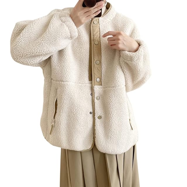 [NOMSOCR] ボアコート レディース ボアジャケット 長袖 フリースジャケット もこもこ 防寒コート アウター ゆったり ノーカラー ボアブルゾン
