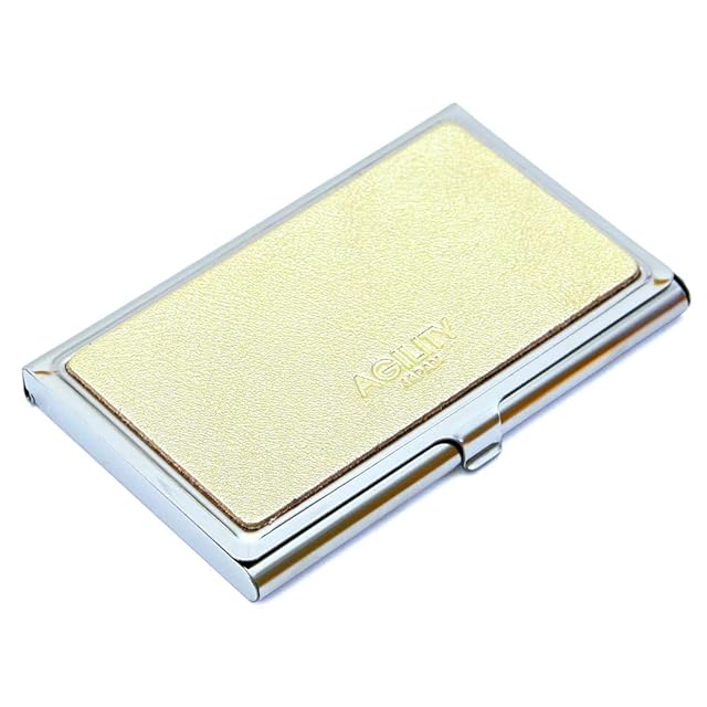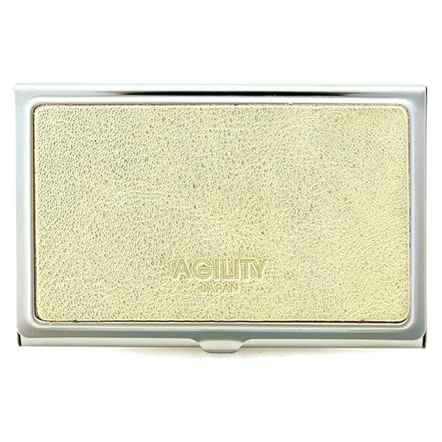 シンプルなステンレス製のカードケースの表面に、AGILITYのロゴ入り革を貼り合わせました。紙の厚さにもよりますが、約20~25枚程度の名刺が収納できます。フラップは180度まで開くので、名刺の出し入れする動作を妨げません。本体はステンレス製なので変色しにくく、特別なお手入れをしなくても輝きを保つことができます。貼り合わせた革はオイルをふんだんに含んでいるので、使い込むほどに色の深みと艶が増す、エイジングを愉しむことができます。